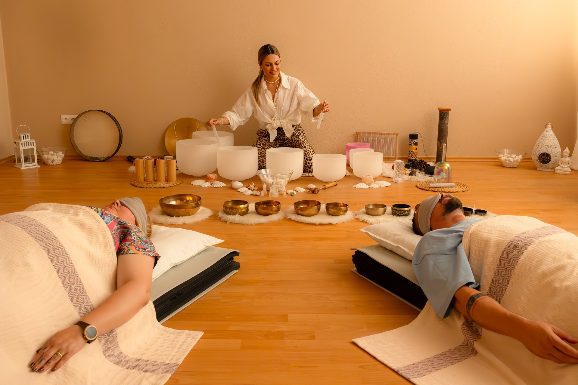 - 3. Tehotenstvo (najmä 1. trimester) Hlboké vibrácie a intenzívne gongové kúpele môžu byť rizikové. Jemnejšie zvuky (kryštálové misy, zvončeky, hlas) sú väčšinou bezpečné, ale vždy s opatrnosťou.